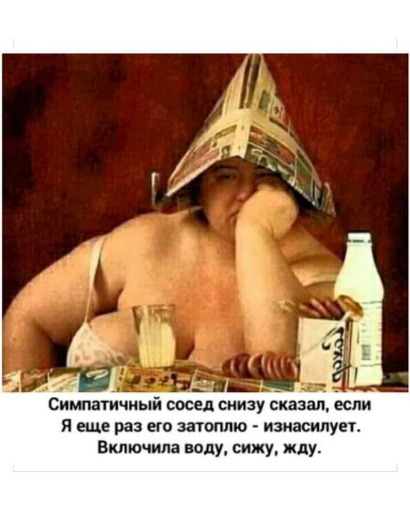 Бедный мужик...Что она его затопила, что он,живя бы этажом выше, её бы затопил- всё равно ему капец...Да тут ещё кефир этот...