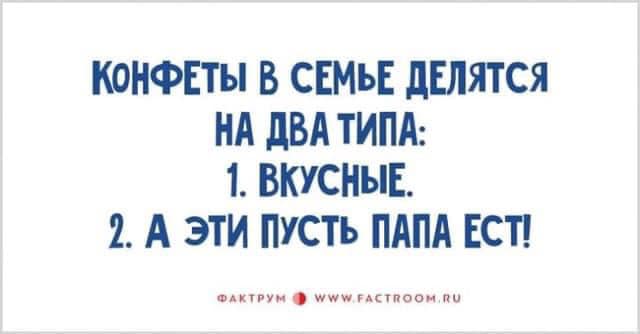 Ну это в случае, если папа там как тот, кто сжирает три стейка семги вместо одного в счёт зарплаты жены да подъедает всю черешню, что видит, не оставляя другим шанса. Так что и конфеты такому нужны попроще, пусть количеством берёт. Та же селедка вместо семги
