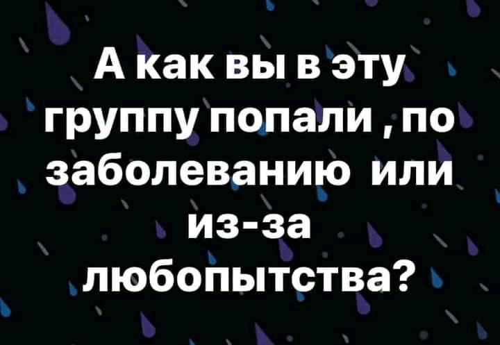 Из любопытства к заболеванию! А, ващенто, я уже как- то отвечала, что меня создали в 3й версии в подвальной лаборатории, а сюда уже взрывной волной откинуло...