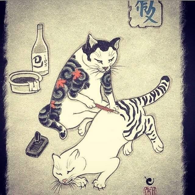 В дни депрессии Басё Делал тигра из кисё, Формируя черной тушью Полосё за полосё